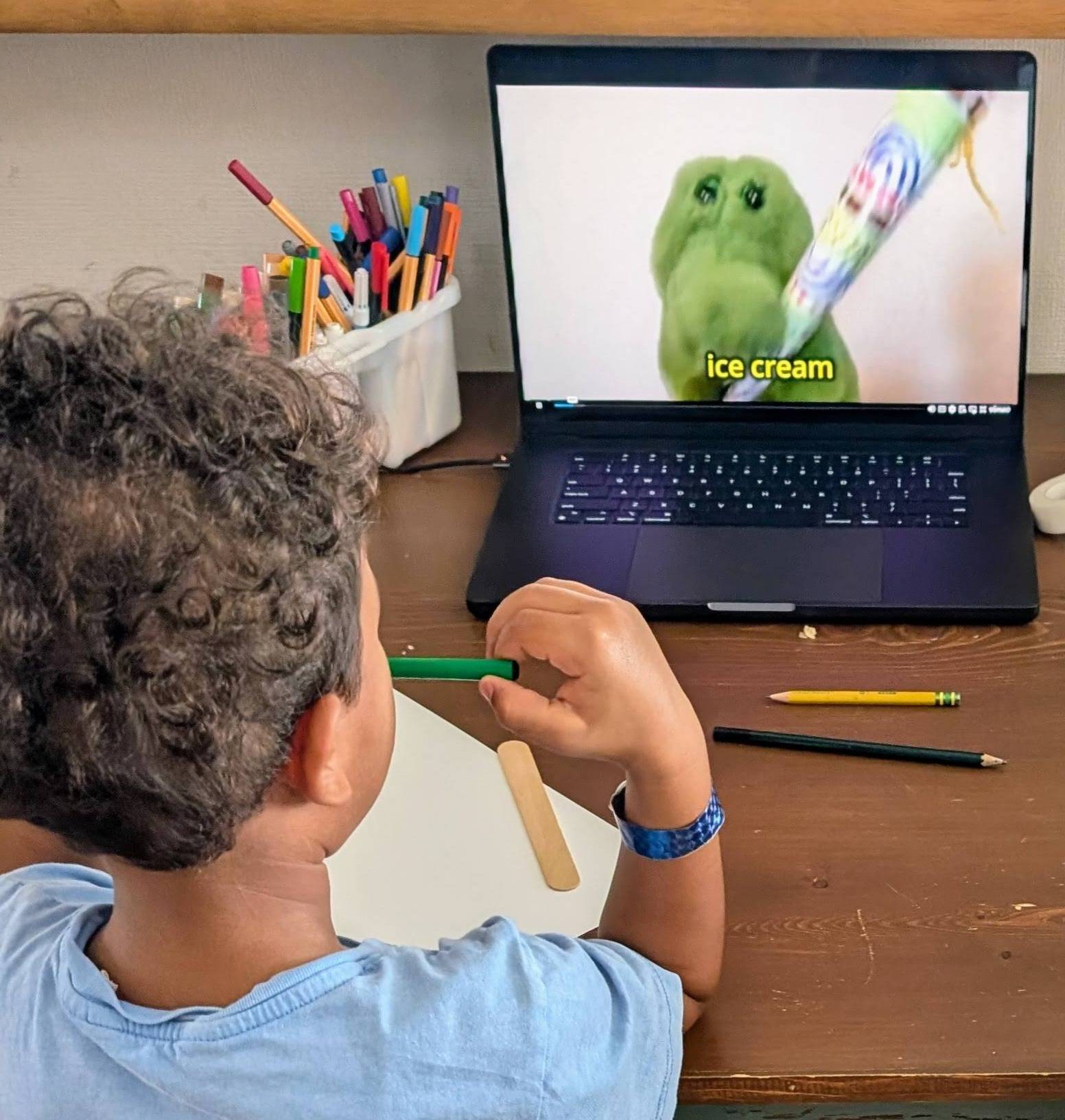 Studio ARRT Club is an online art program for kids ages 5–10, taught in English by Ashley — an artist living in Japan. Every lesson is hands-on, playful, and designed to make your child feel like a maker. English happens along the way, without pressure.